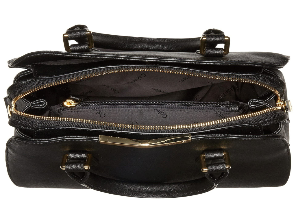 Calvin Klein Kabelka On My Corner Saffiano Leather Satchel Black Gold