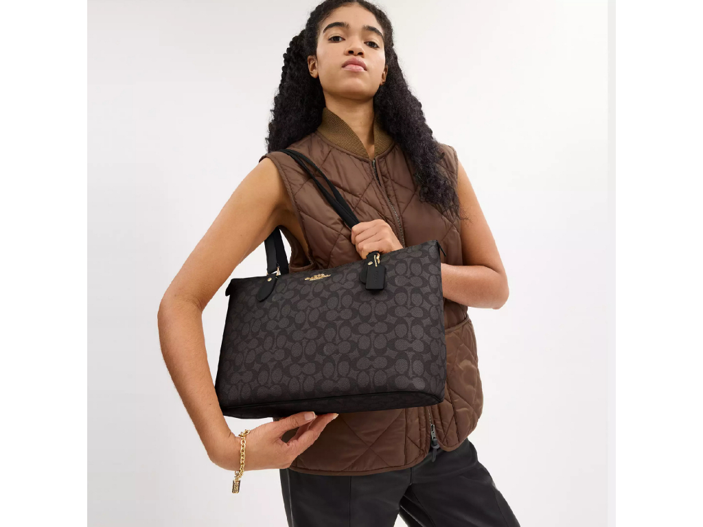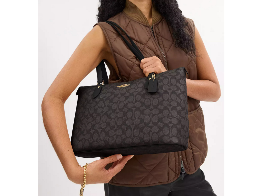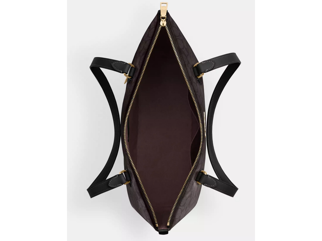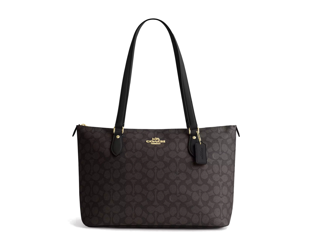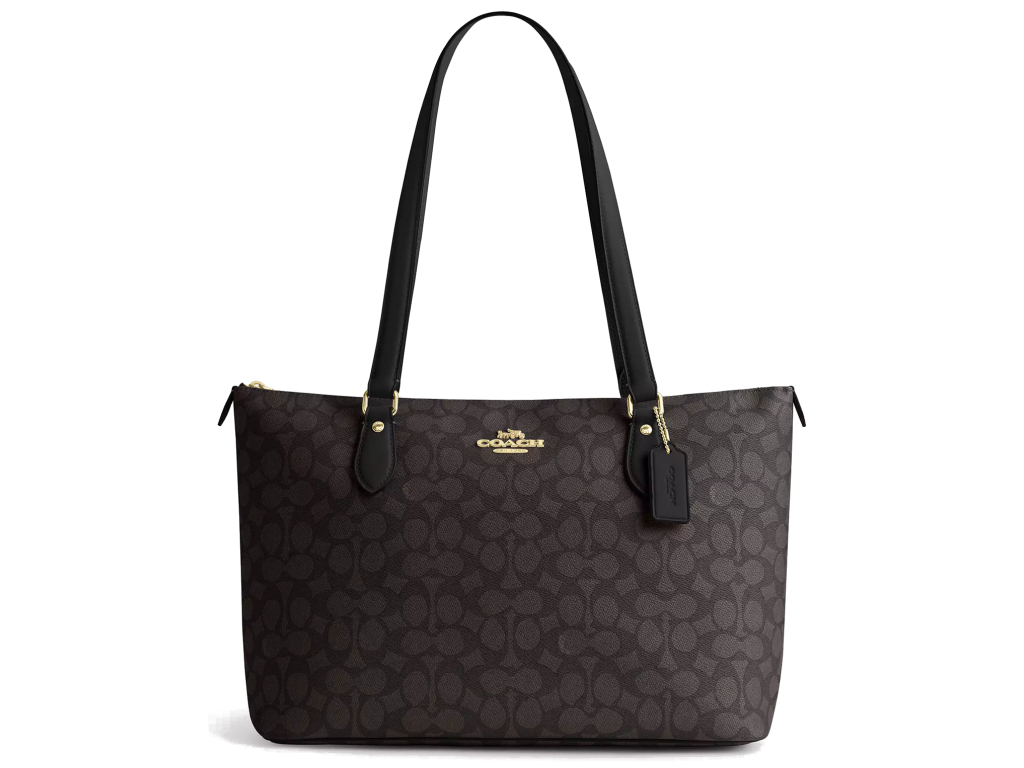 COACH Kabelka Gallery Tote Bag In Signature Canvas Gold Walnut Black