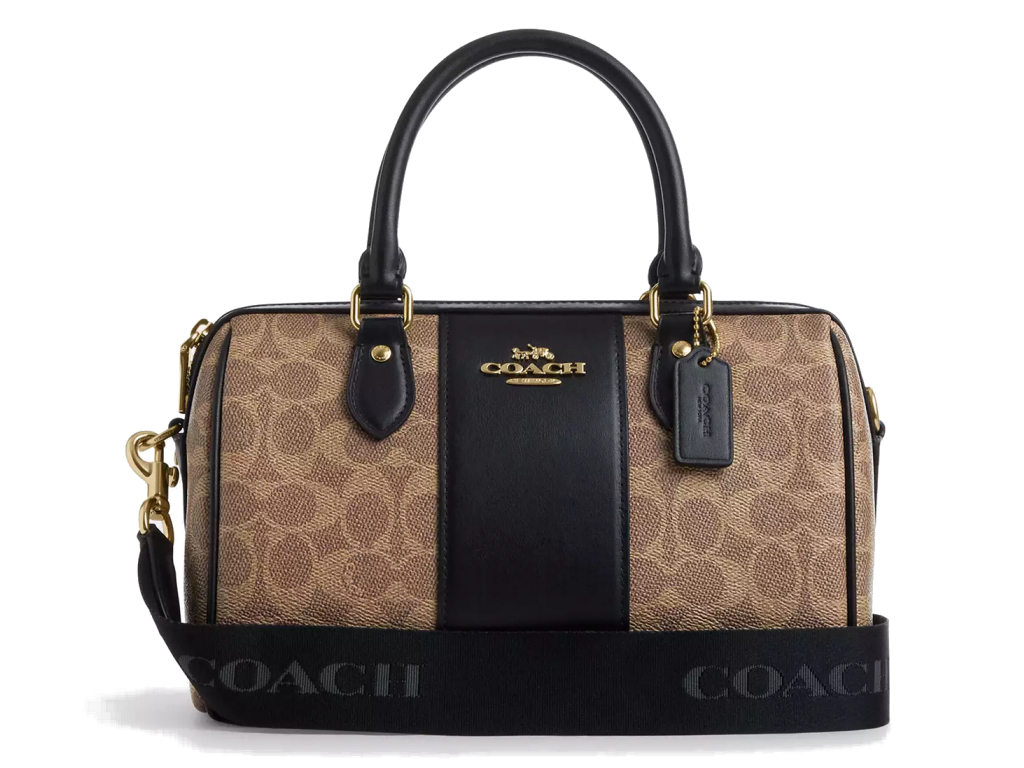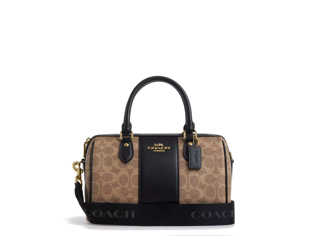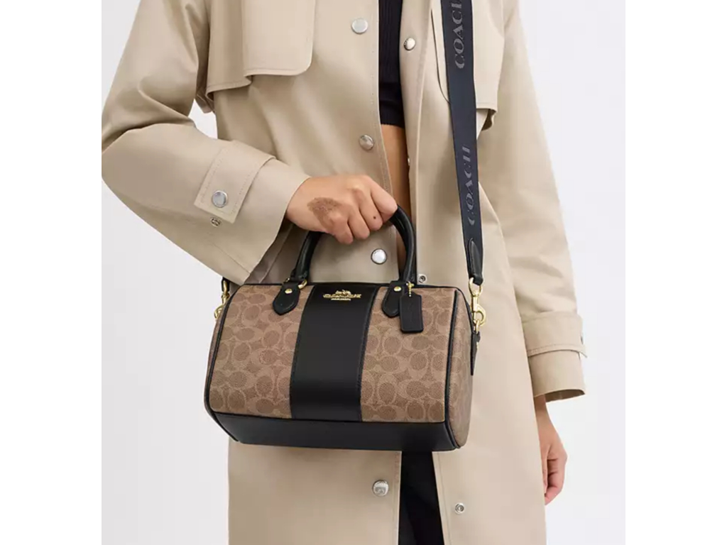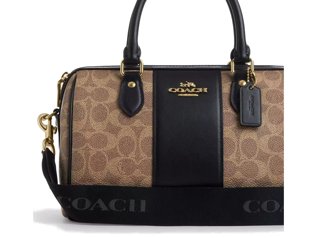 COACH Kabelka Rowan Satchel Bag In Signature Canvas Gold Tan Black