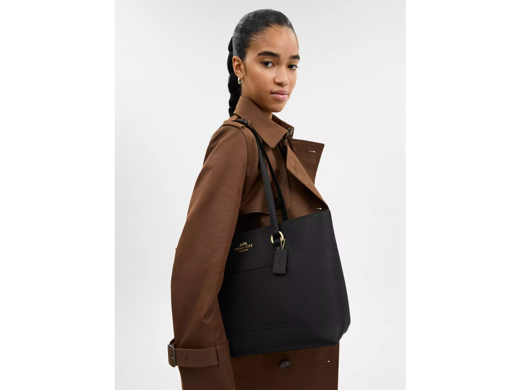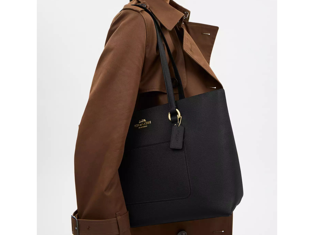 COACH Kabelka Station Tote Bag Crossgrain Leather Gold Black