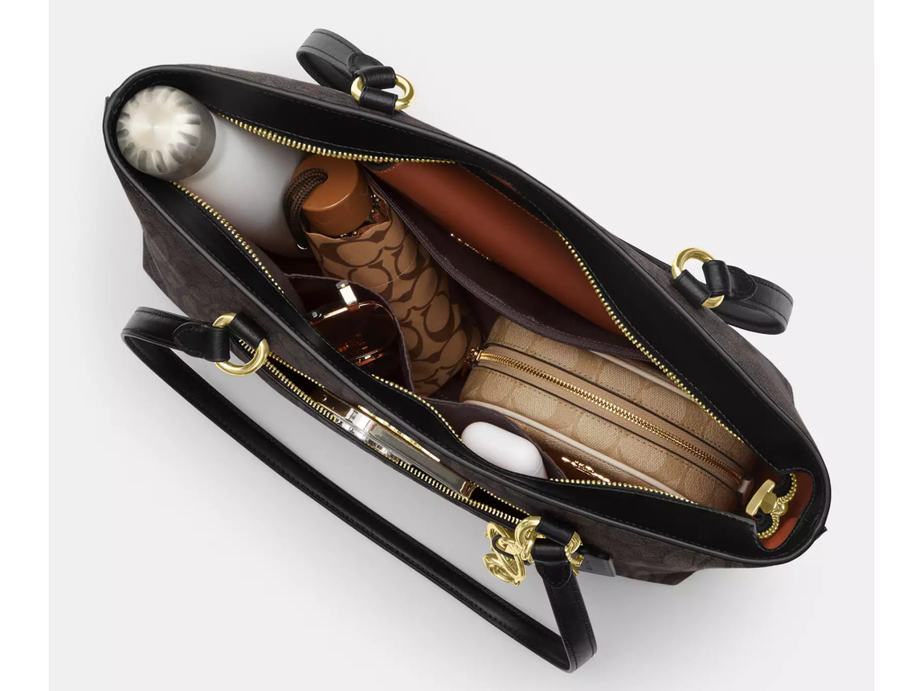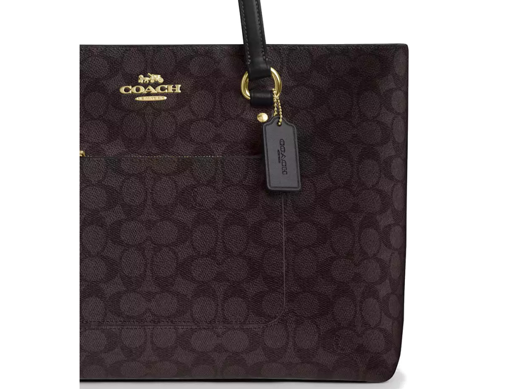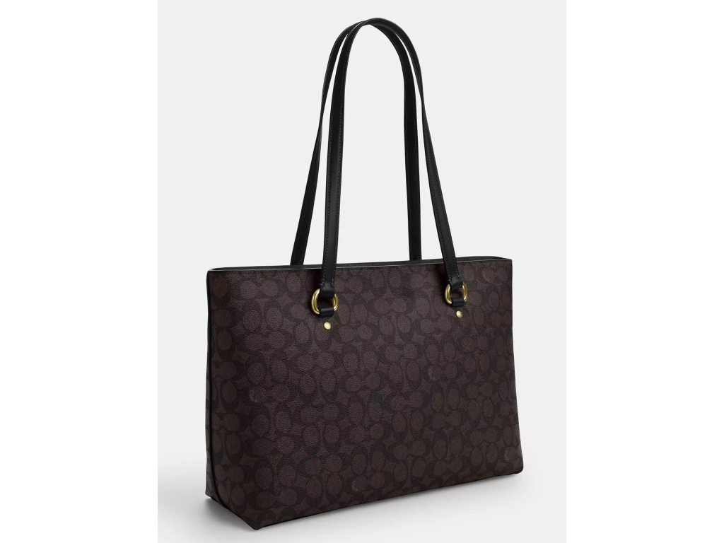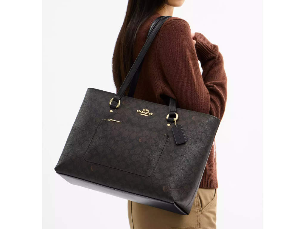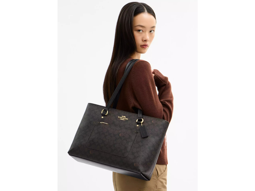 COACH Kabelka Station Tote Bag In Signature Canvas Gold Wallnut Black