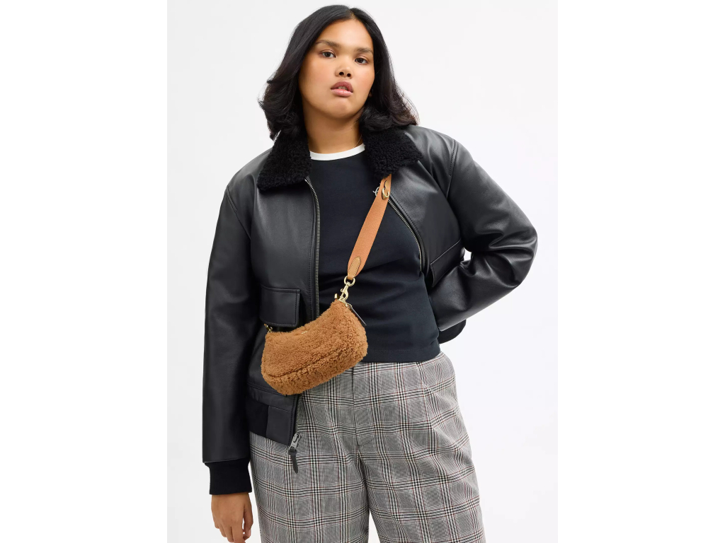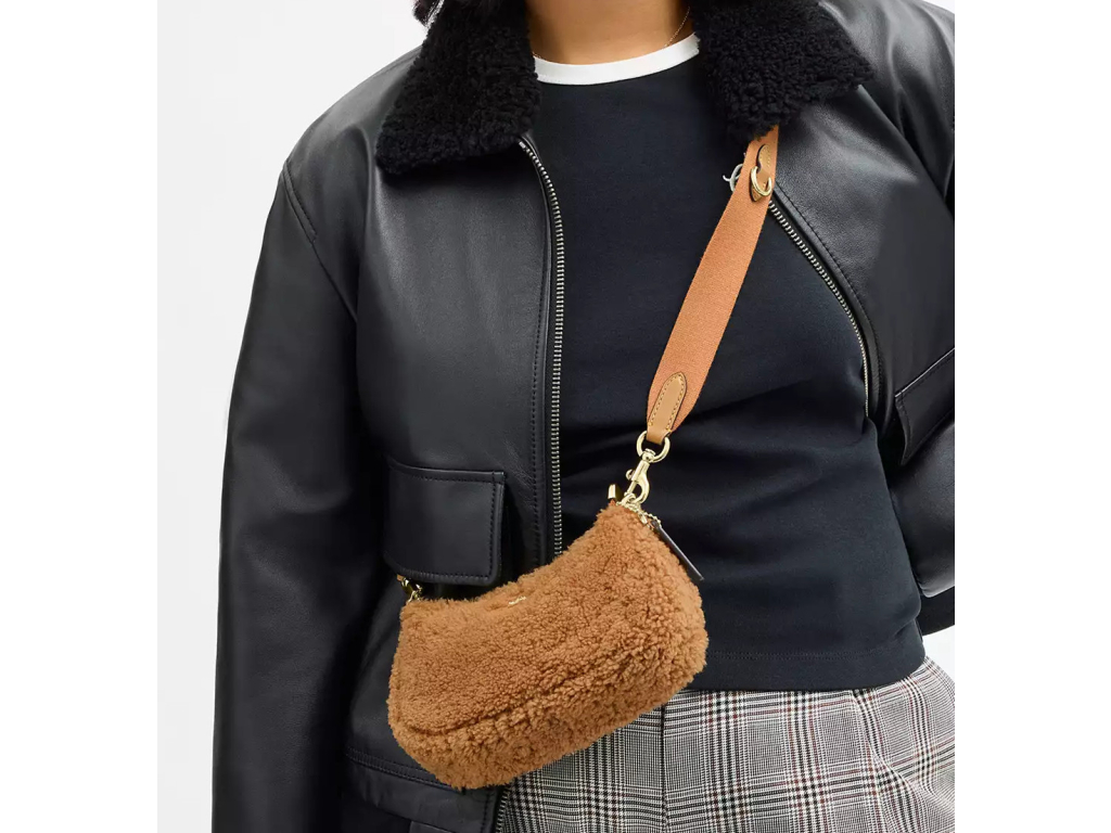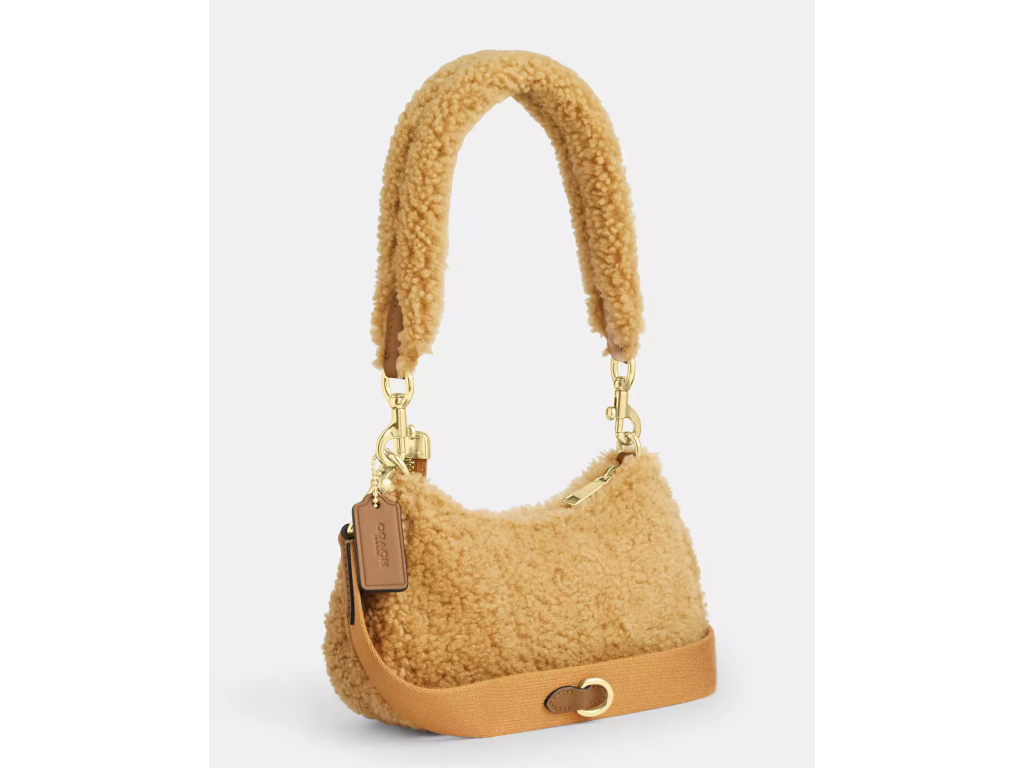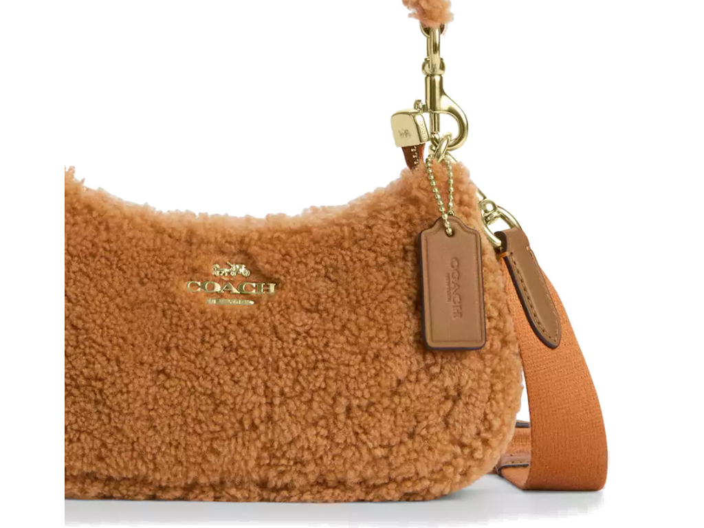 COACH Kabelka Teri Mini Crossbody Bag In Shearling Gold Dark Natural Honey Brown