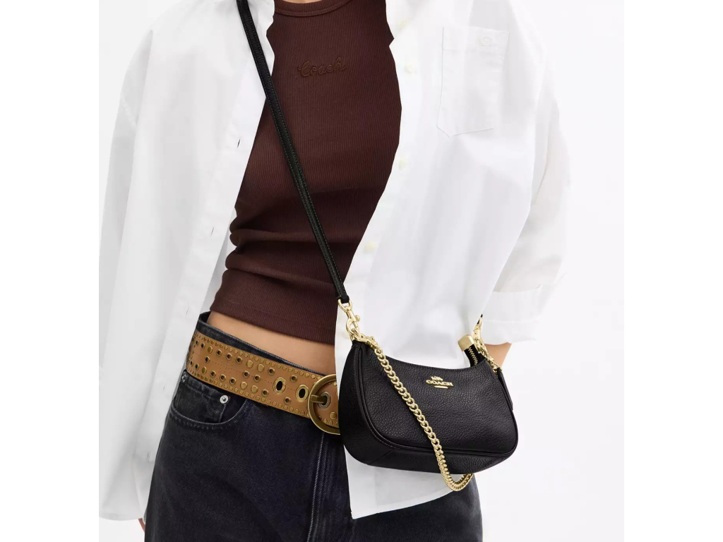 COACH Kabelka Teri Mini Crossbody Bag Pebbled Leather Gold Black
