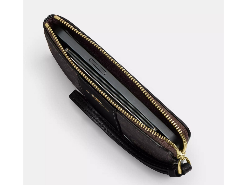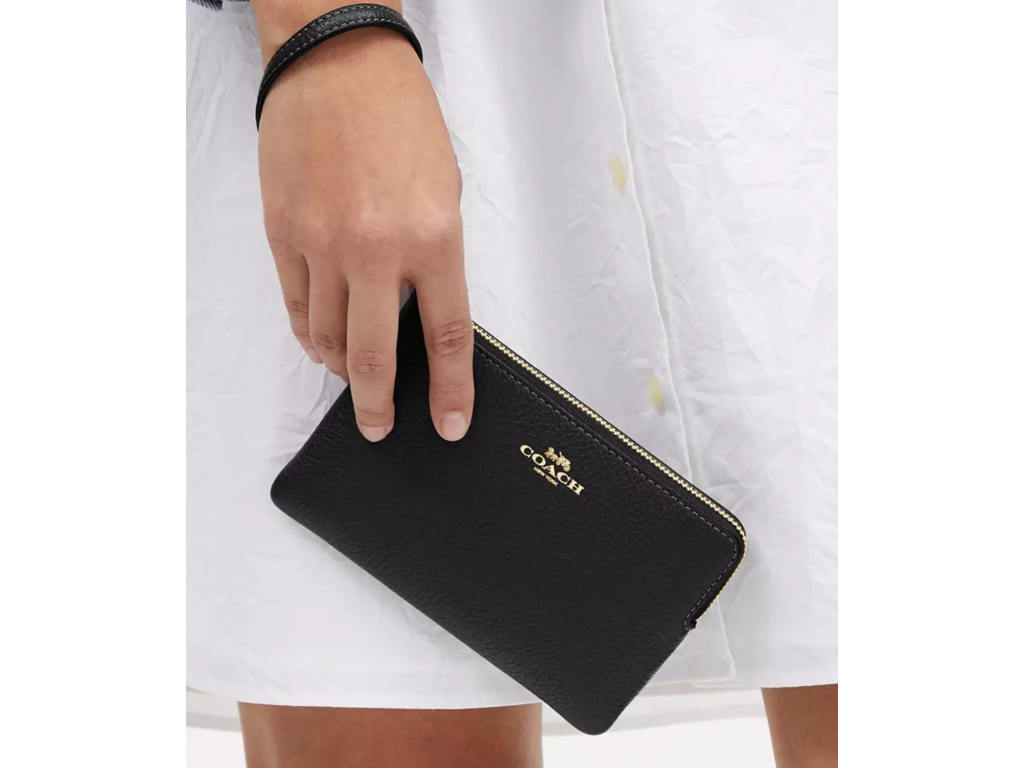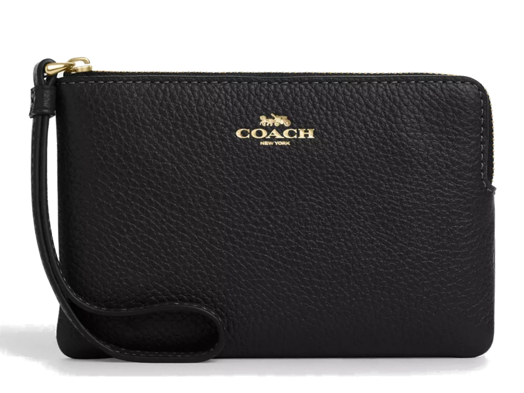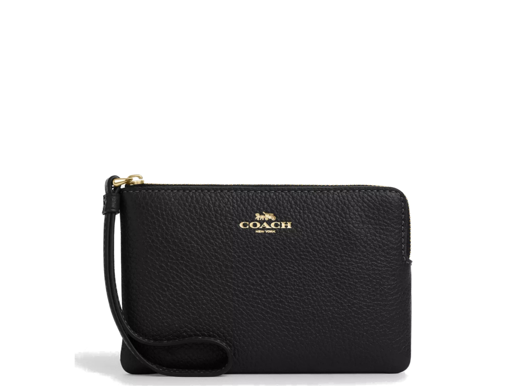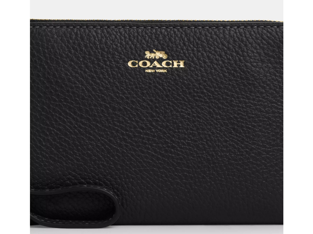 Coach Peněženka Coach Corner Zip Wristlet In pebbled leather Gold Black