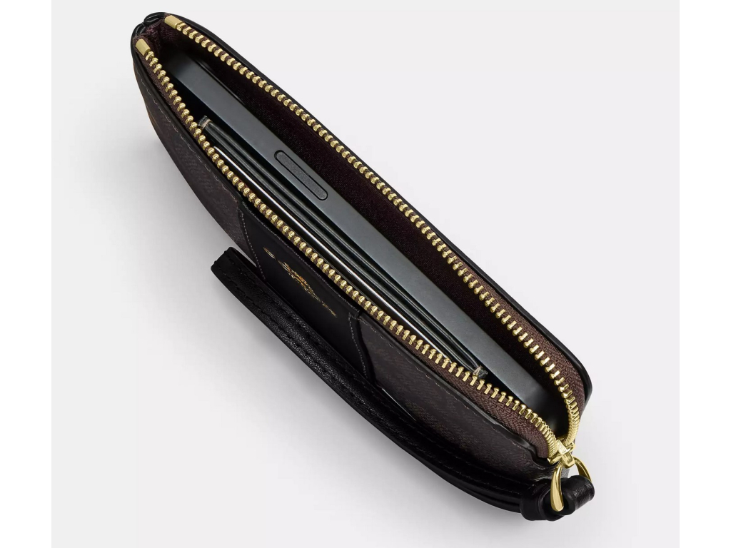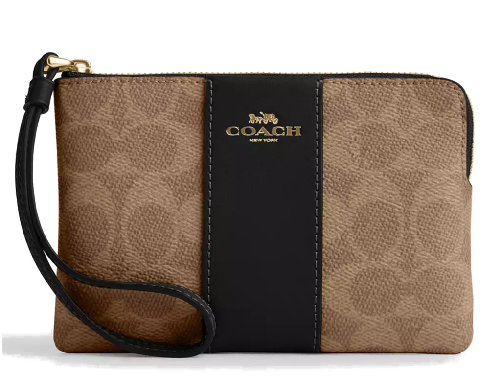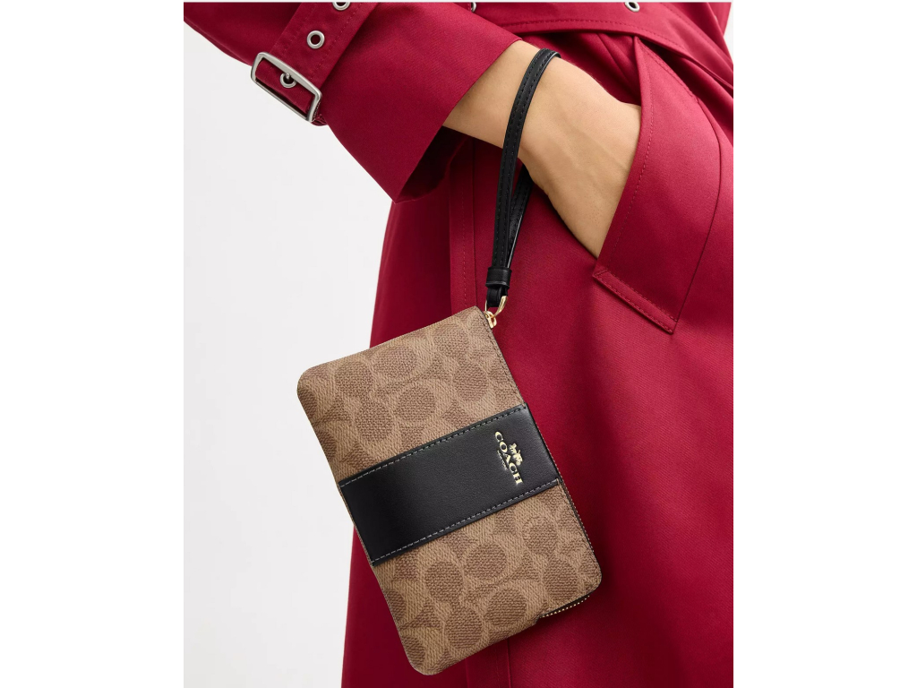 Coach Peněženka Coach Corner Zip Wristlet In Signature Canvas Gold Tan Black