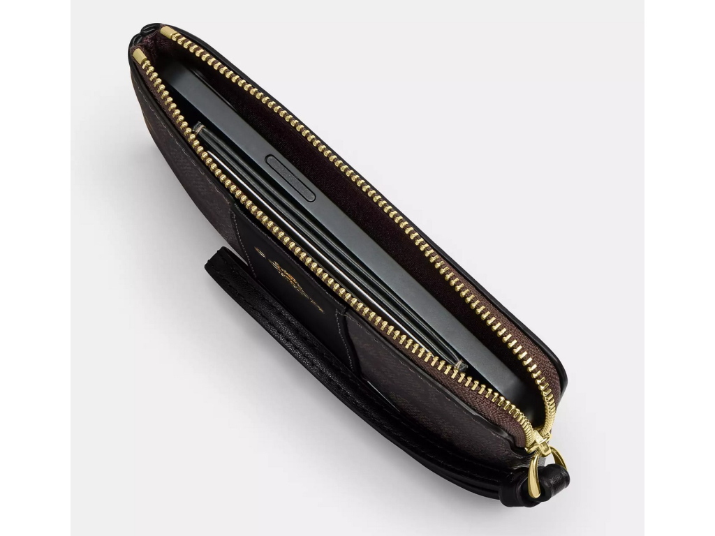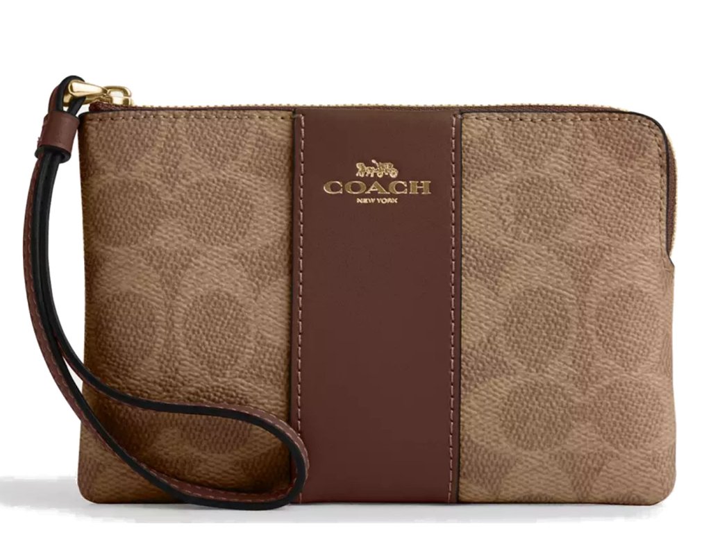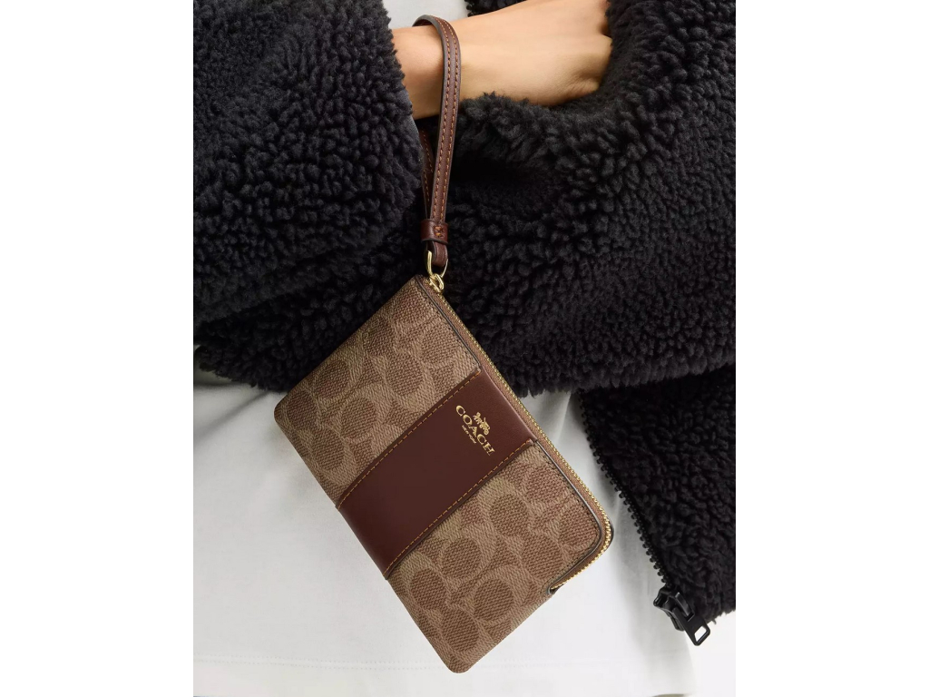 Coach Peněženka Coach Corner Zip Wristlet In Signature Canvas Gold Tan Brown