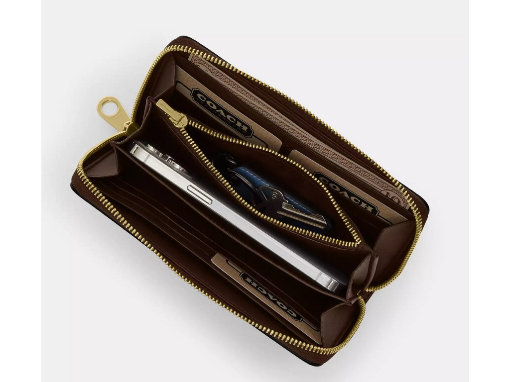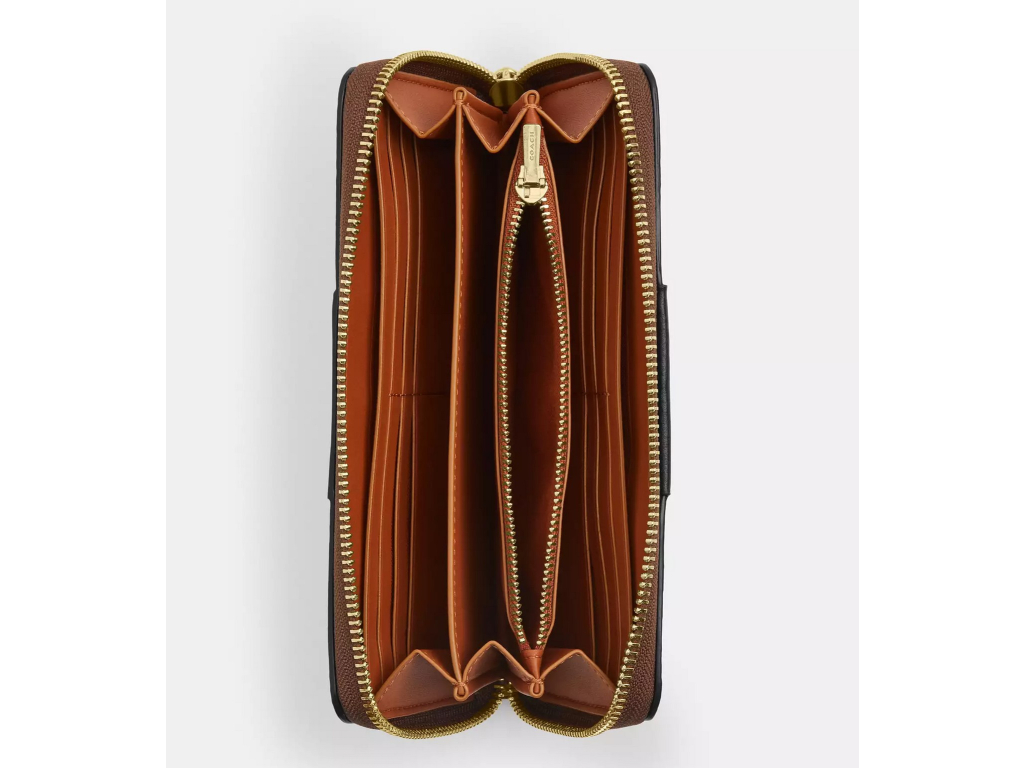 Coach Peněženka Long Zip Around Wallet In Signature Canvas With Stripe Tan Black