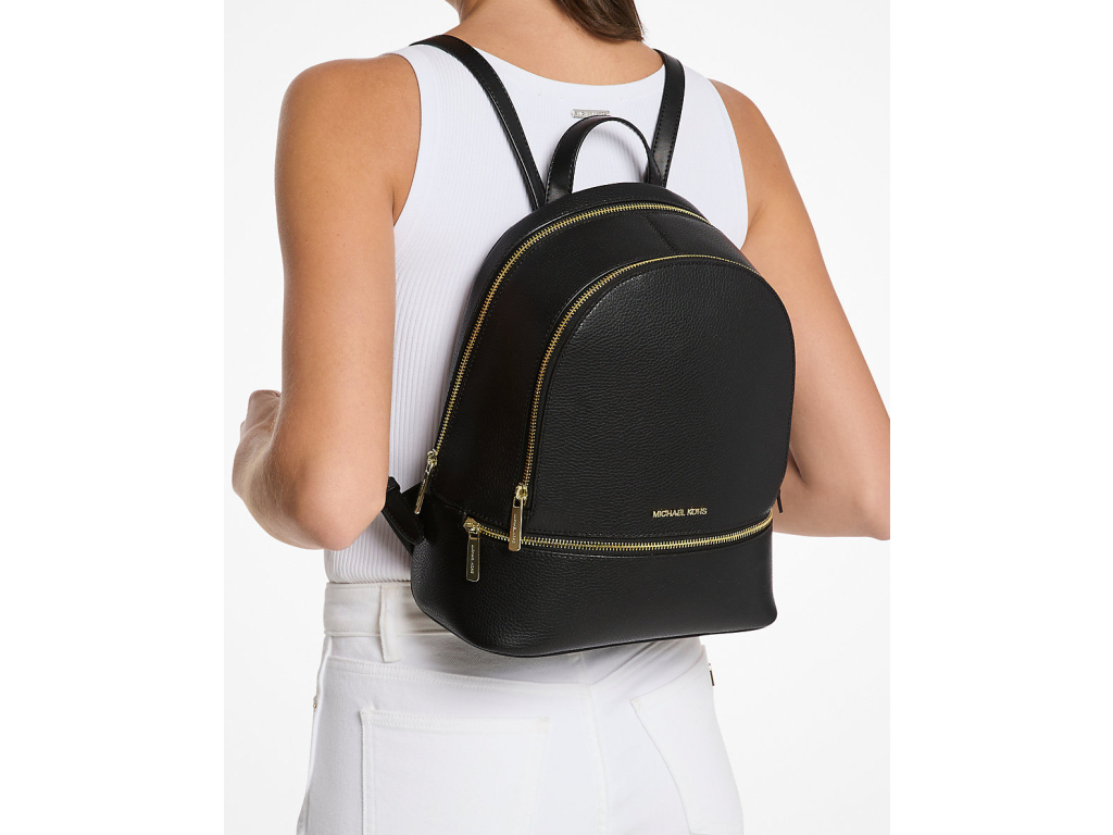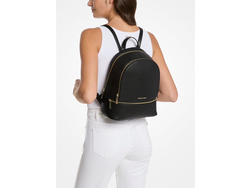 Michael Kors Batoh Rhea Medium Pebbled Leather Backpack Black Gold
