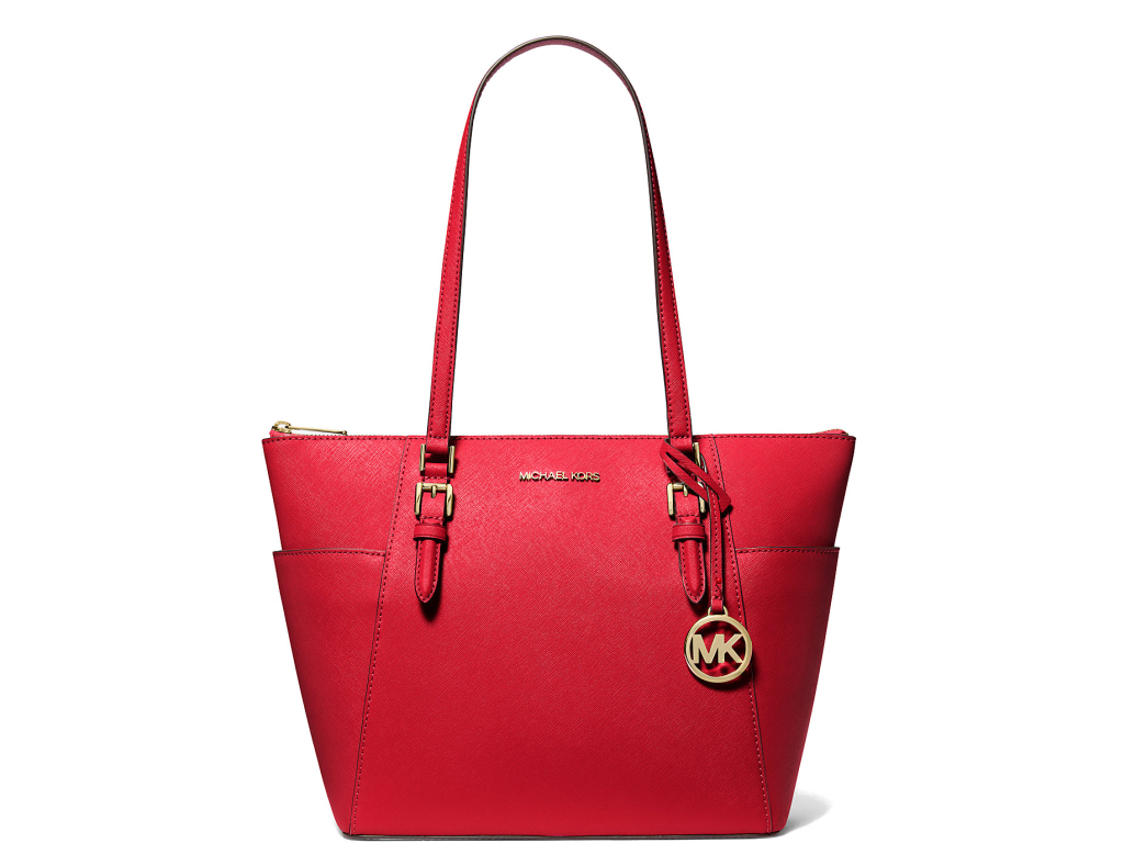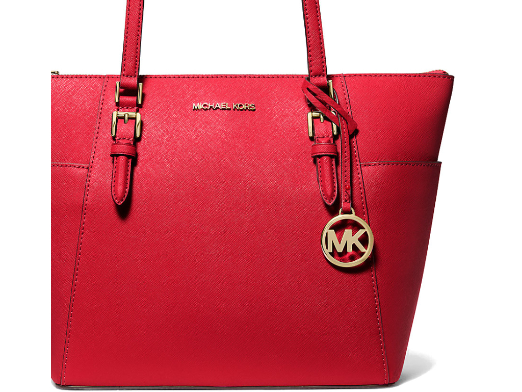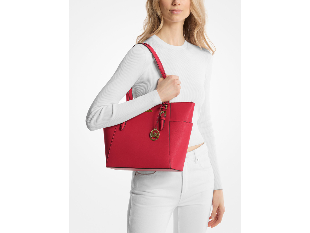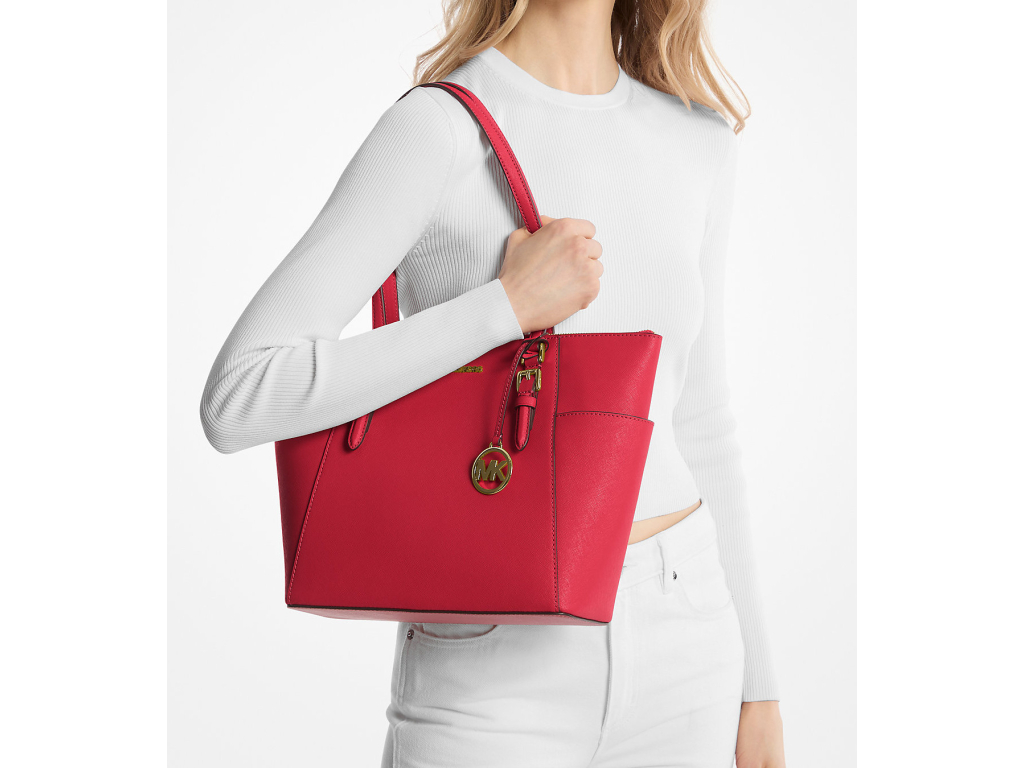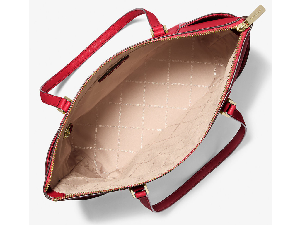 Michael Kors Charlotte Large Saffiano Leather Top-Zip Tote Bag Bright Red