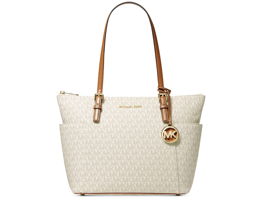 Michael Kors Jet Set East West Top Zip Leather Tote Vanilla Acorn Gold