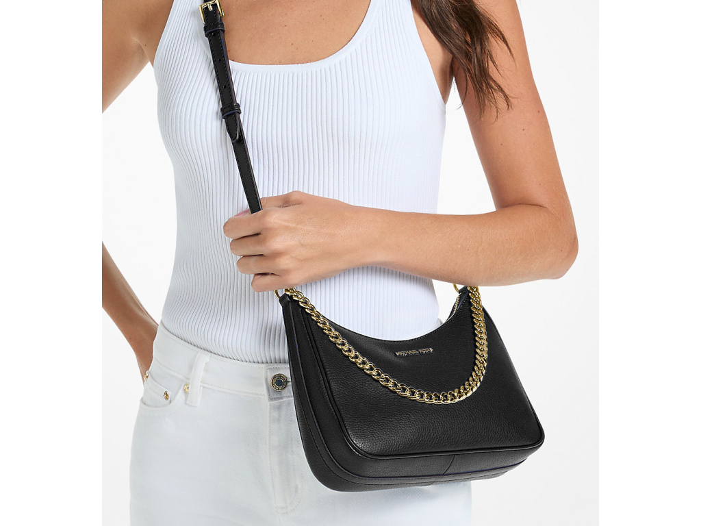 Michael Kors Jet Set Large Pebbled Leather Convertible Crossbody Bag Black
