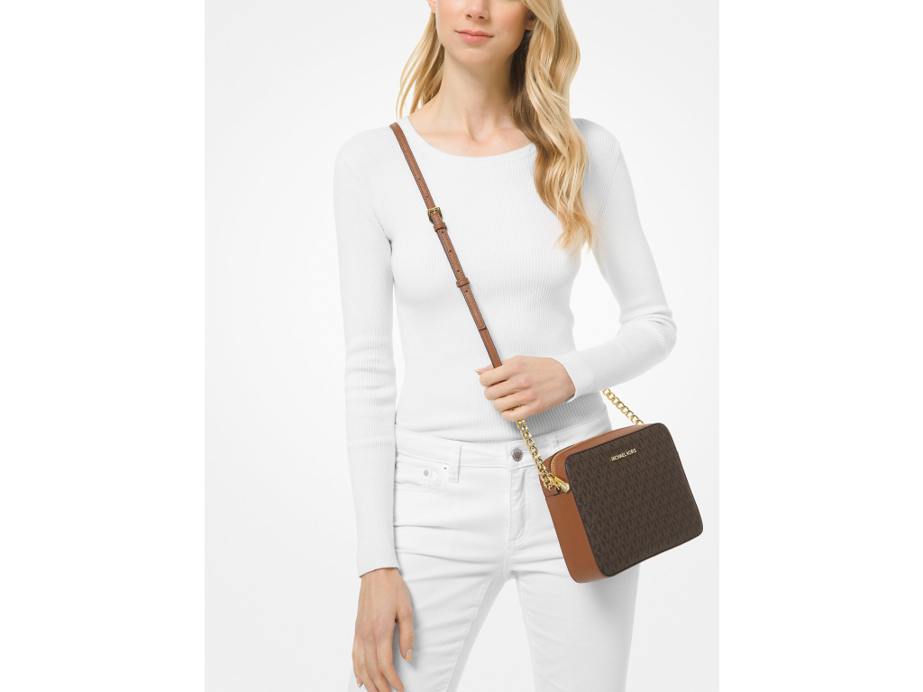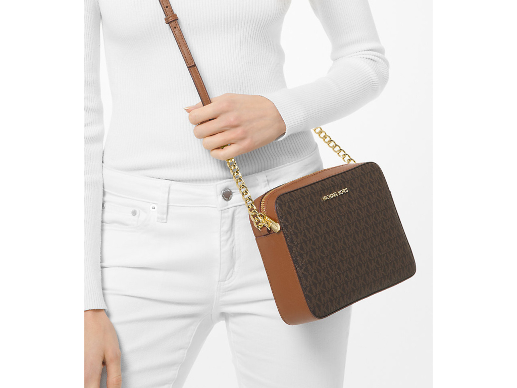 Michael Kors Jet Set Large Printed Logo Crossbody Bag Brown