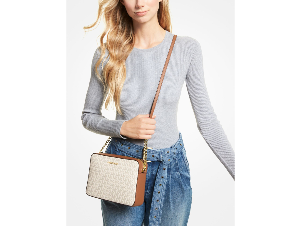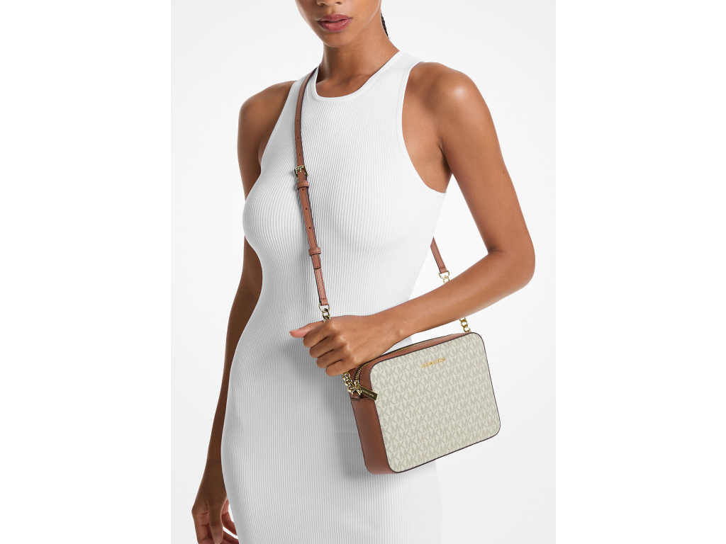 Michael Kors Jet Set Large Printed Logo Crossbody Bag Vanilla