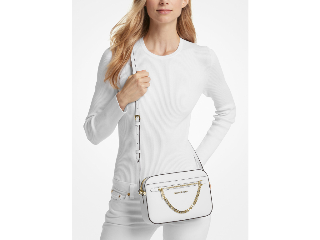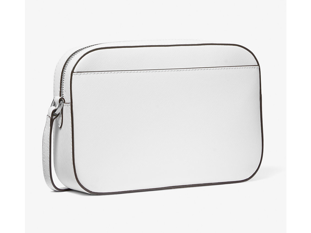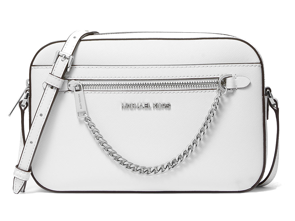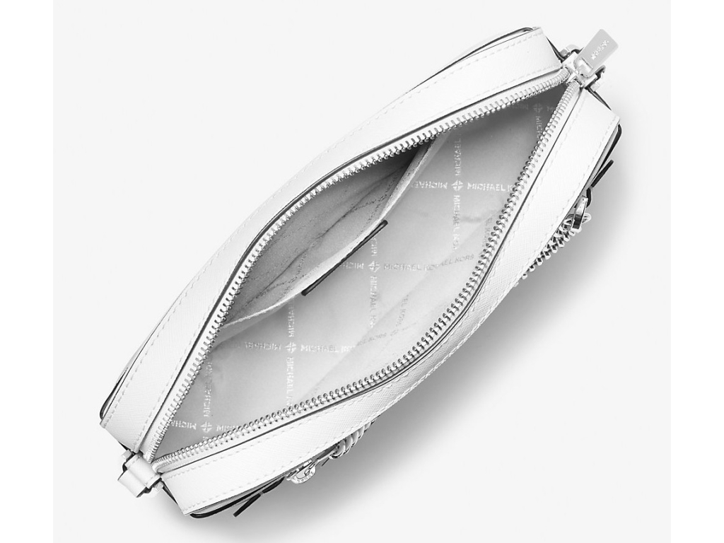 Michael Kors Jet Set Large Saffiano Leather Crossbody Bag White Silver