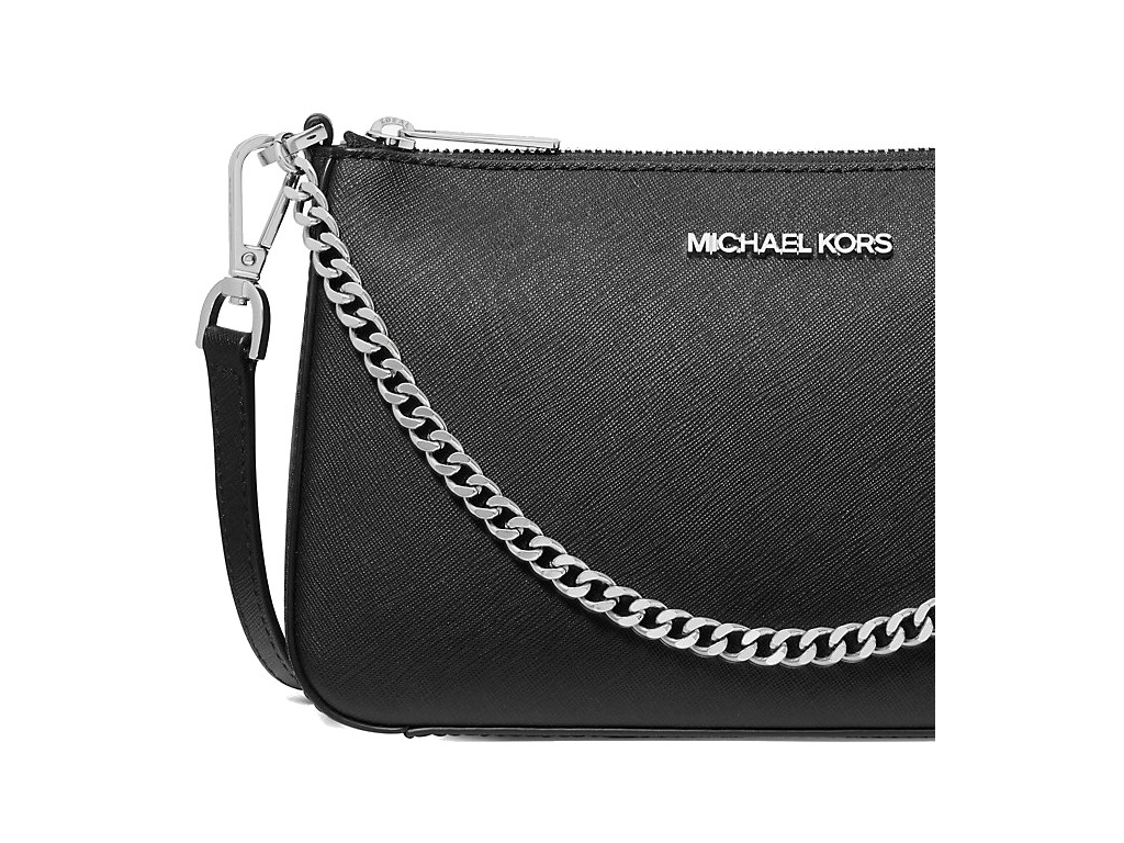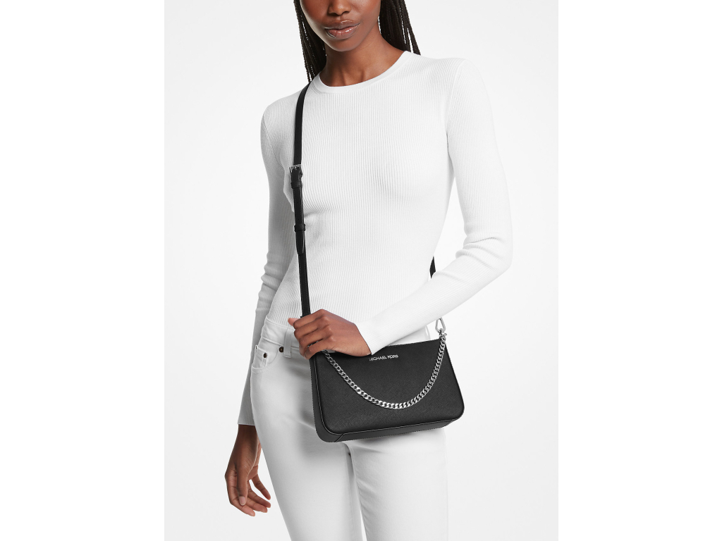 Michael Kors Jet Set Medium Saffiano Leather Crossbody Bag Black Silver