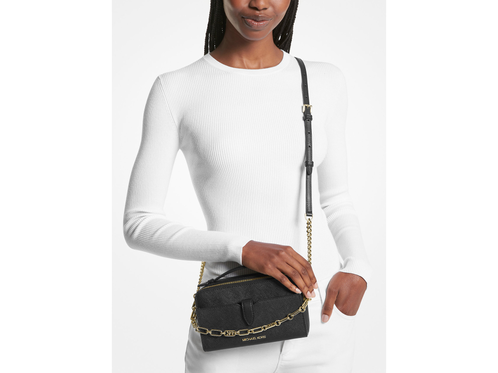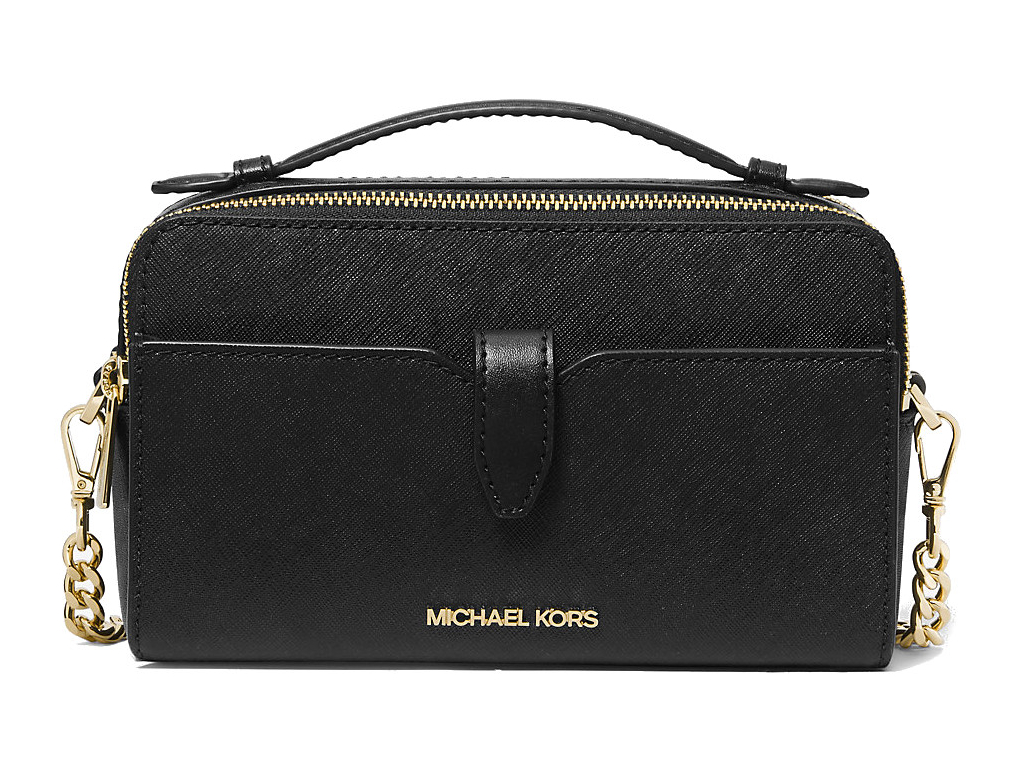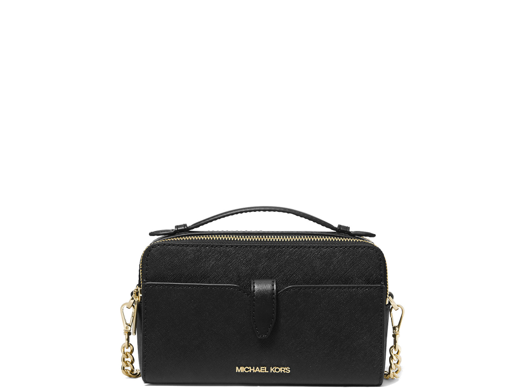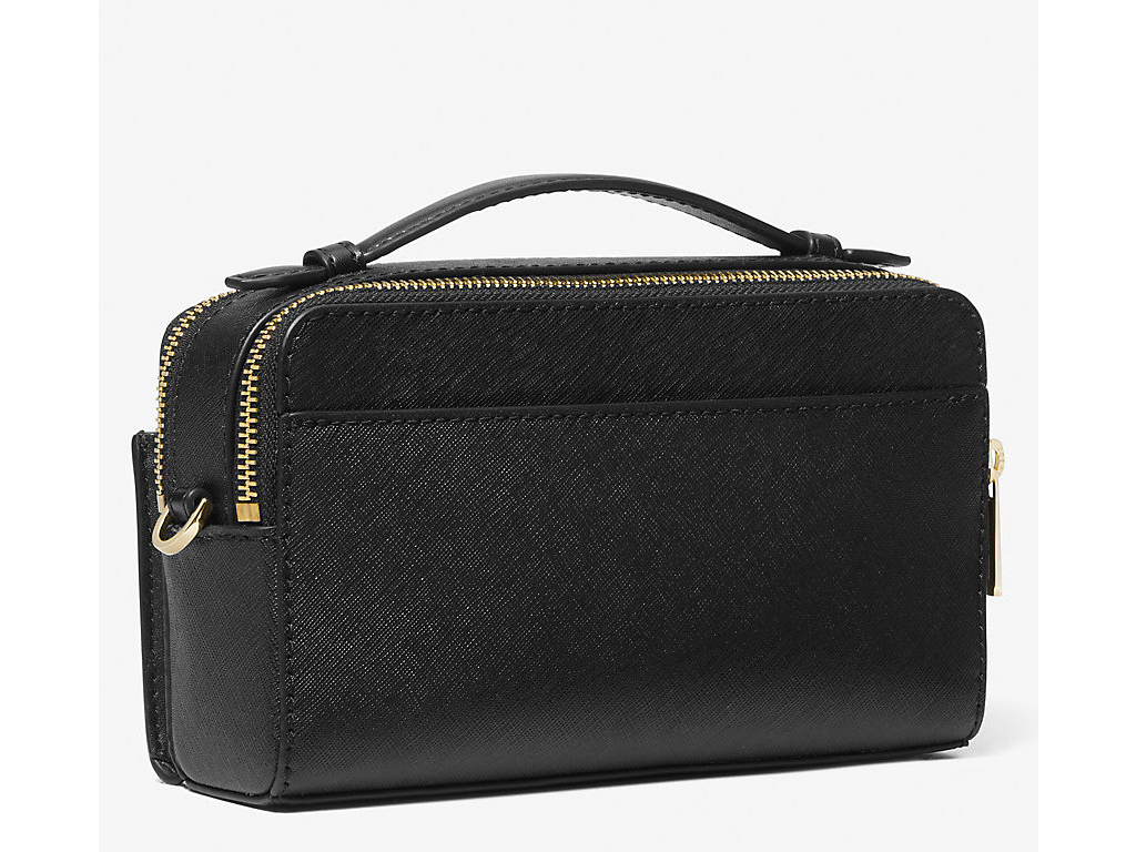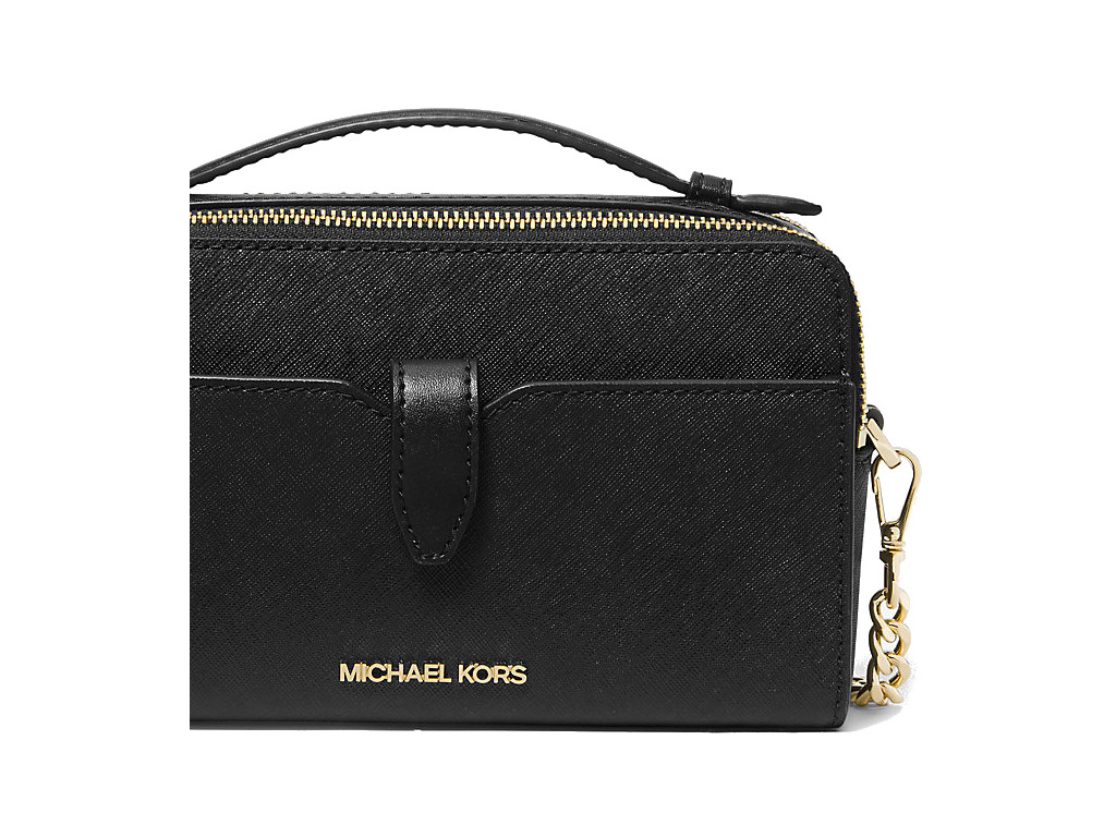 Michael Kors Jet Set Medium Saffiano Leather Smartphone Double-Zip Crossbody Bag Black