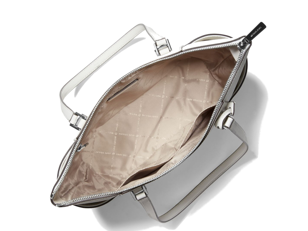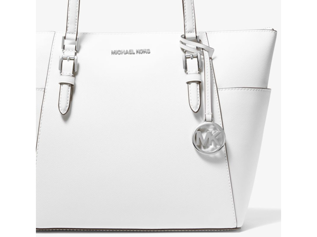 Michael Kors Charlotte nagy, Saffiano bőr felső-cipzáras hordtáska, optikai fehér