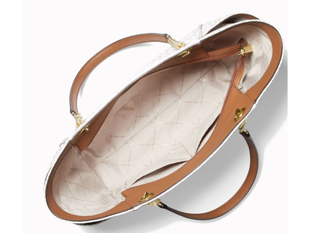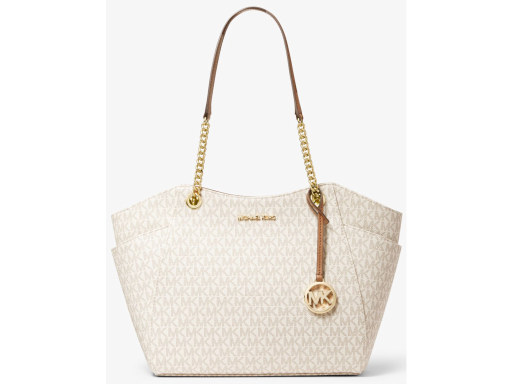 Michael Kors Jet Set Large Logo Tote Bag Vanilla 11pt;">89,4% bevont vászon, 9,6% poliészter, 1% poliuretánKülső oldalzsebek, belső cipzáras hátsó zseb és egyéb többfunkciós zsebek is használhatók="