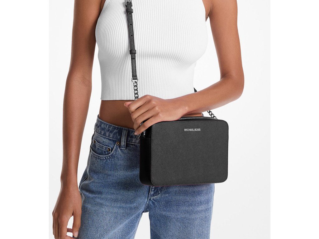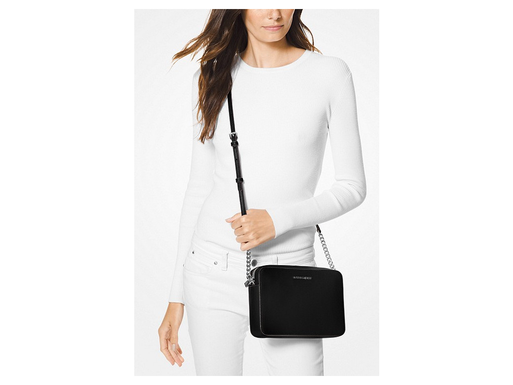 Michael Kors Kabelka Jet Set Large Saffiano Leather Crossbody Black Silver