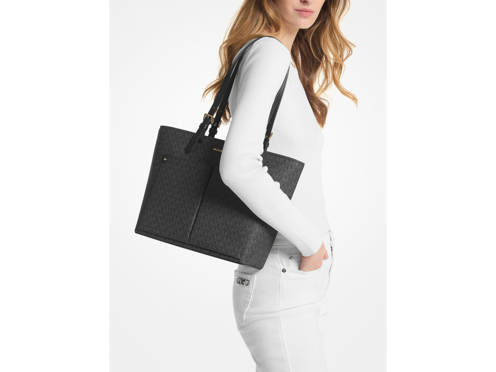 Michael Kors Kabelka Jet Set Medium Logo Pocket Tote Bag Black