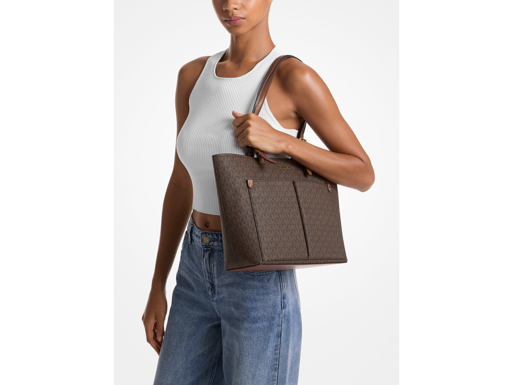 Michael Kors Kabelka Jet Set Medium Logo Pocket Tote Bag Brown