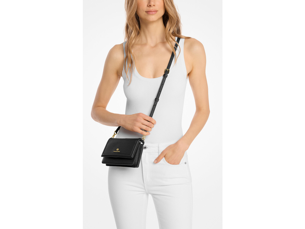 Michael Kors Kabelka Jet Set Small Pebbled Leather Smartphone Convertible Crossbody Bag Black