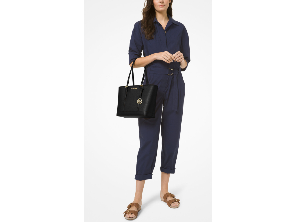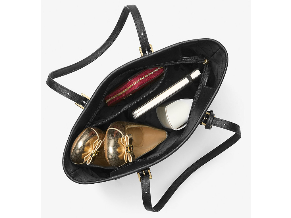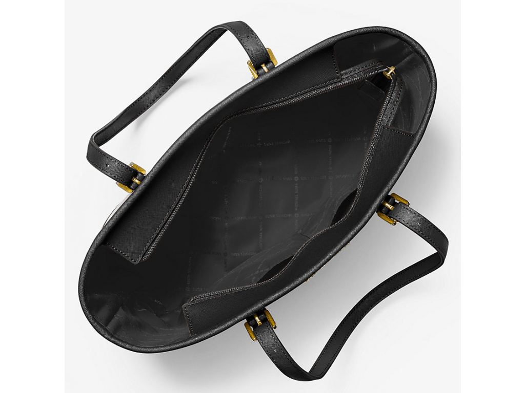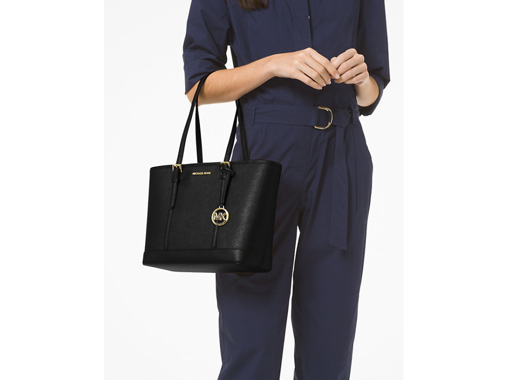 Michael Kors Jet Set utazási kis Saffiano bőr felső cipzáras hordtáska fekete