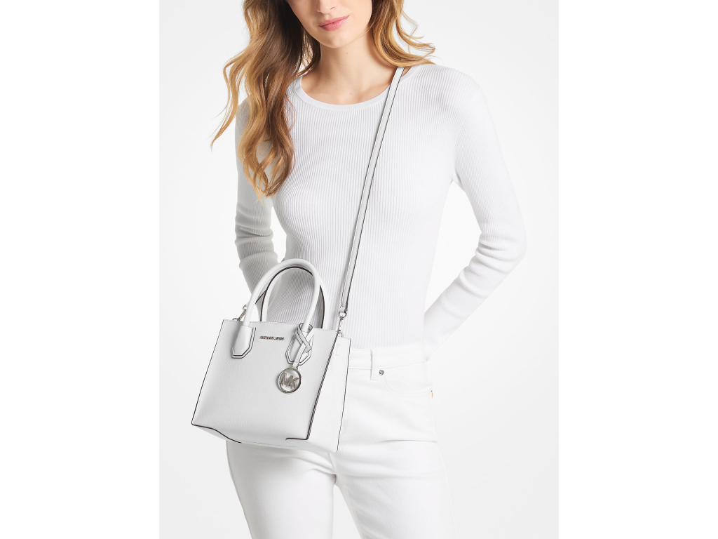 Michael Kors Kabelka Mercer Medium Pebbled Leather Crossbody Bag Optic White