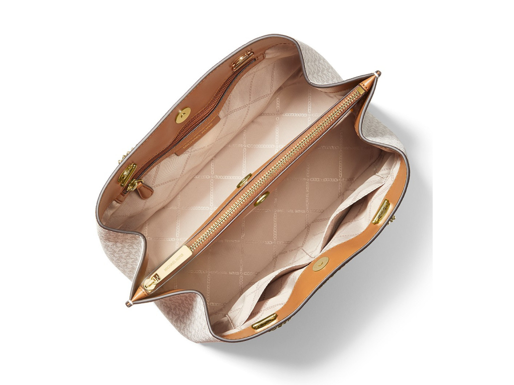 Michael Kors Kabelka Teagan Signature Long Drop Satchel Vanilla Acorn Gold