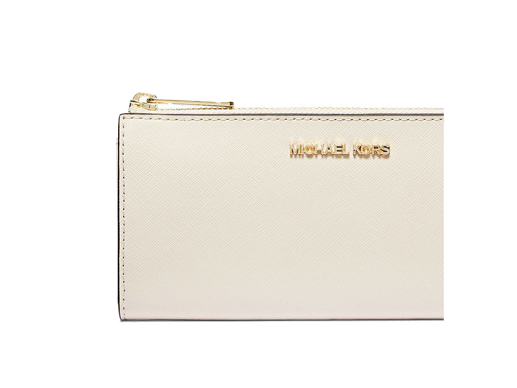 Michael Kors Jet Set Travel Large Saffiano Leather Quarter-Zip Wallet Light Cream